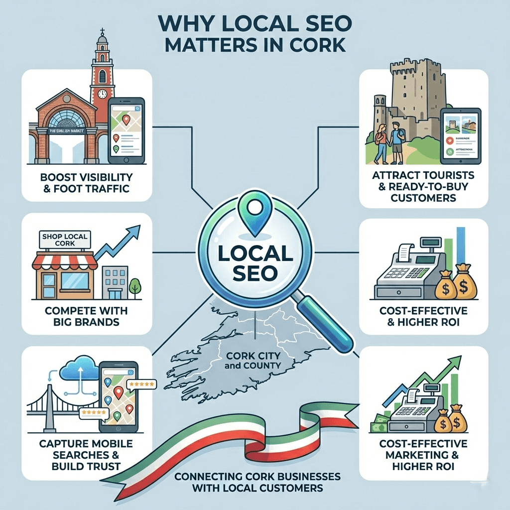 With proper Google My Business optimization, local citations, and Cork-focused content, your business becomes the obvious local choice.